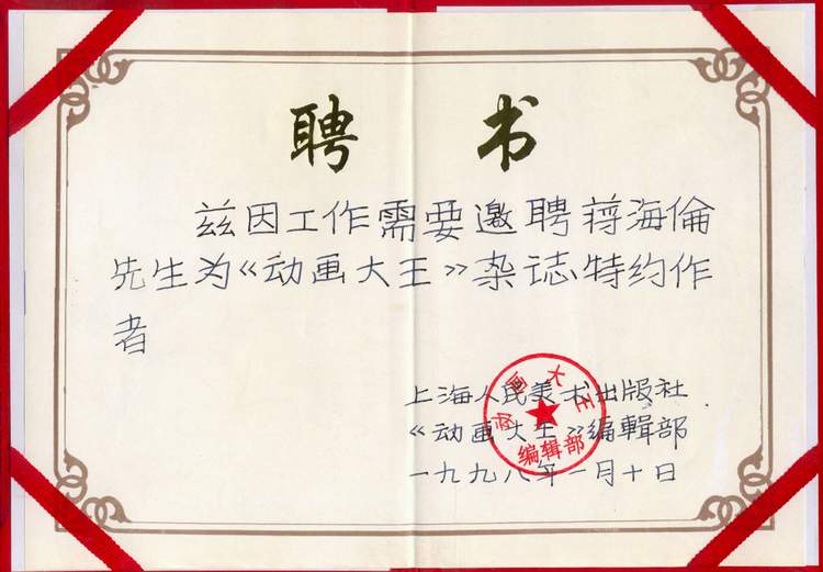 成为上海人民美术出版社《动画大王》杂志社特约记者