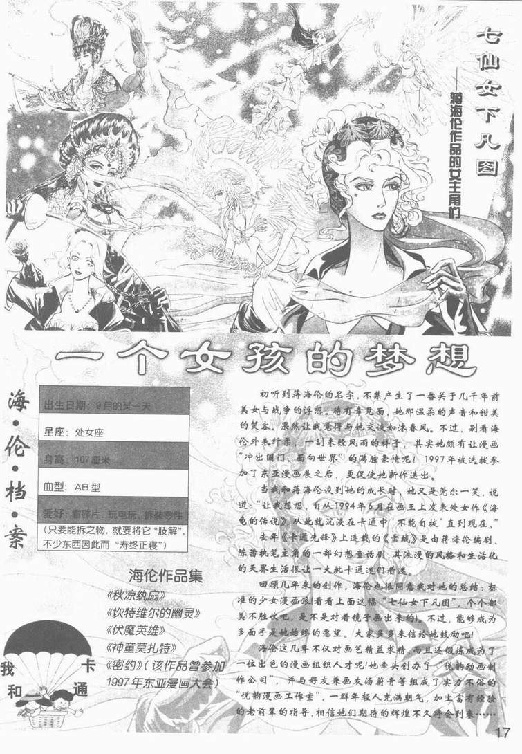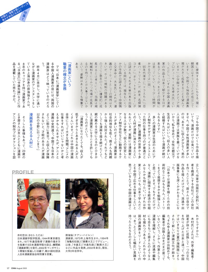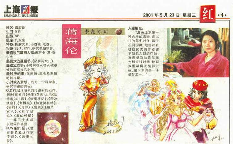 《动画大王》杂志,连载《蒋海伦的日本之旅》系列(日本漫画家访谈等) |